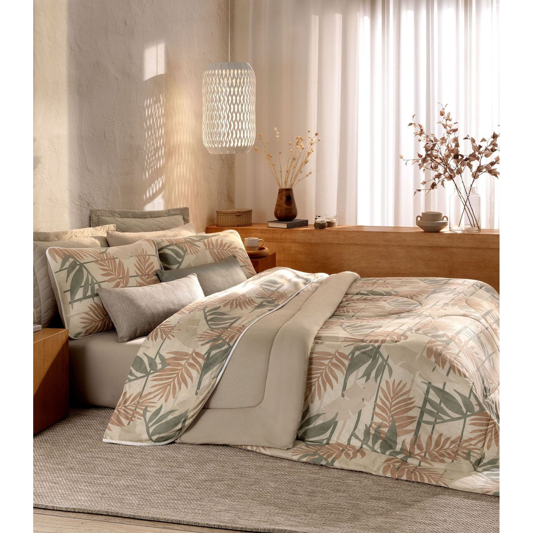 Edredom Casal Maxxi Oasis Microfibra Estampa Tropical Bege - Pernambucanas Casa