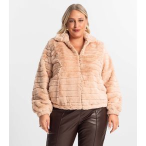 Jaqueta Feminina Plus Size Com Pelo Secret Glam Rosa