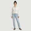 O visual é liso em tom creme, com costuras aparentes contrastantes que valorizam o acabamento. Possui 2 bolsos frontais com aba e botão no estilo cargo e barra reta, ótima para combinar com jeans, calças de sarja ou usar em sobreposições.