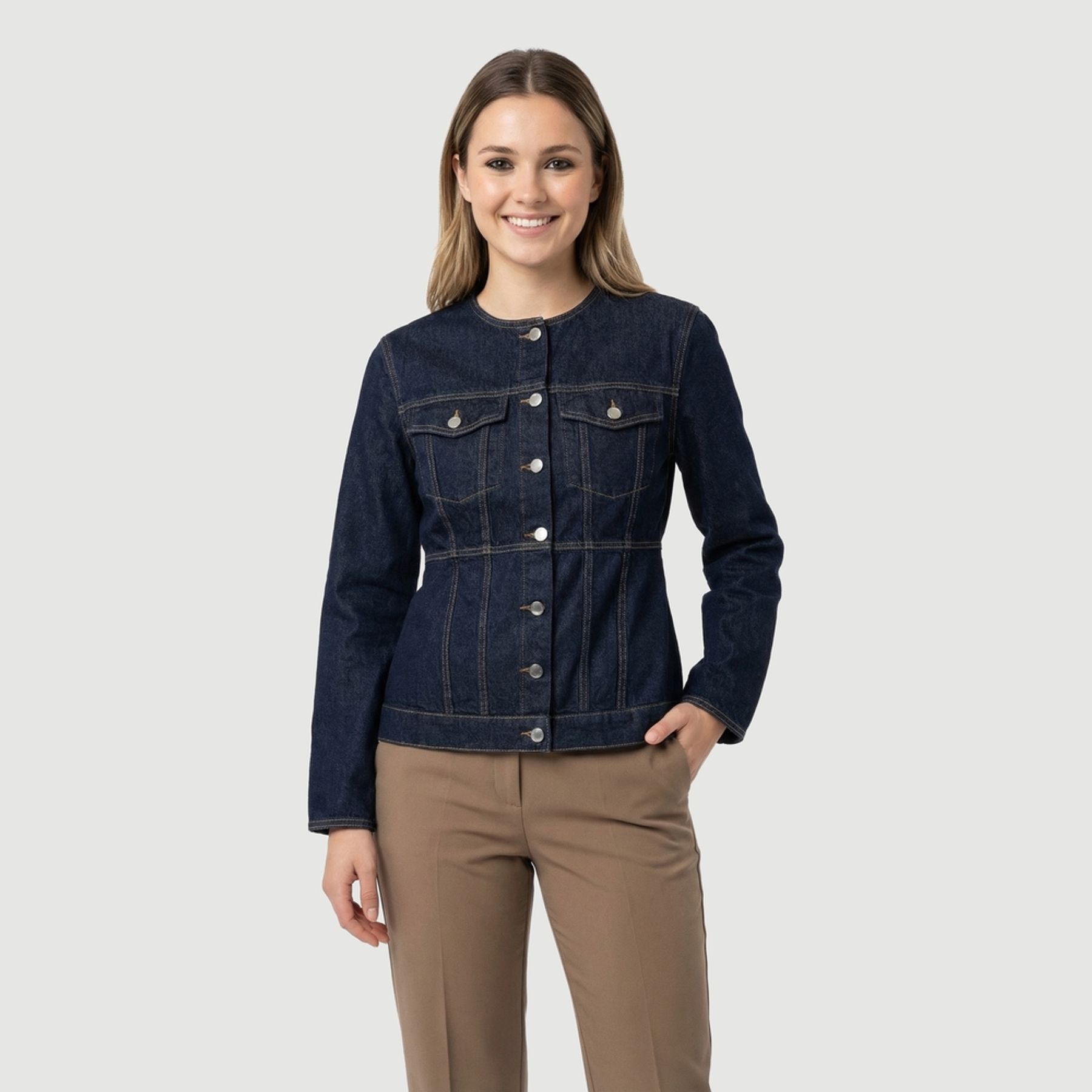 Jaqueta Jeans Feminina Trucker Manga Longa Azul Lisa - Ink