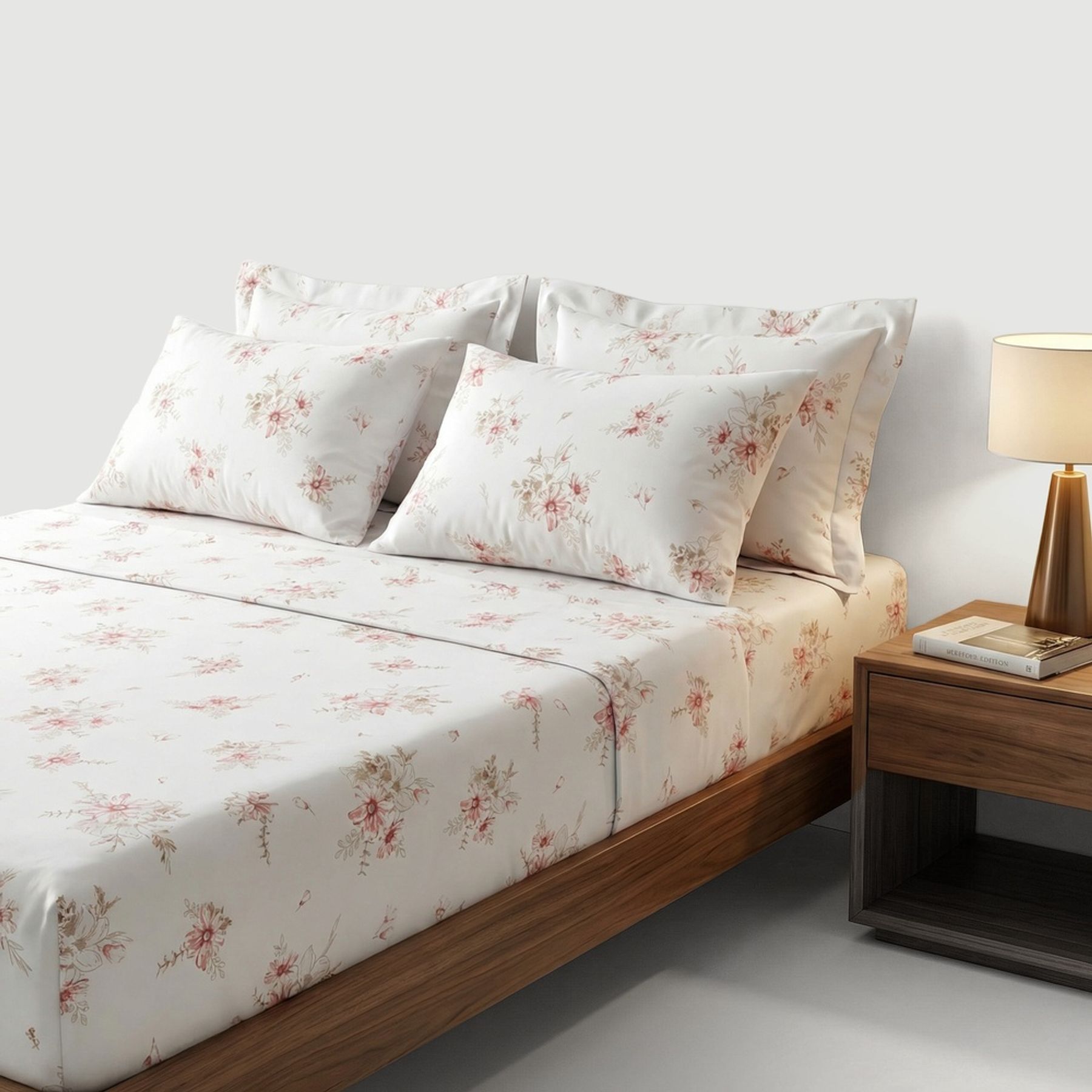 Jogo de Cama Casal Catarina Realce 4 Peças Floral rosa - Sultan