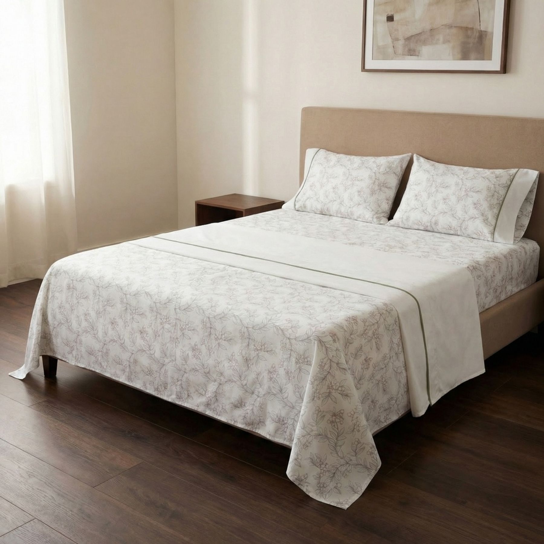 Jogo Cama Casal 4P Floral Bege