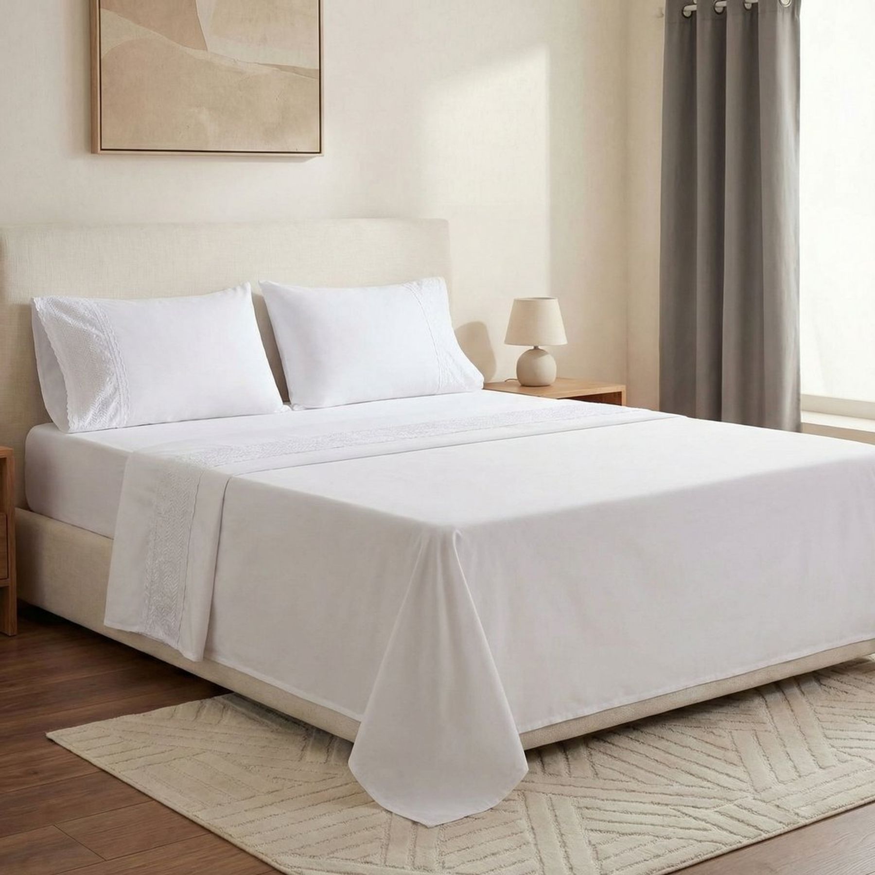 Economia de R$ 20,00O jogo de cama queen 4 peças com bordado da Pernambucanas Casa é ideal para deixar a cama mais bonita e aconchegante. Na cor branca e visual liso, traz faixas bordadas em relevo que acrescentam textura e um acabamento delicado.