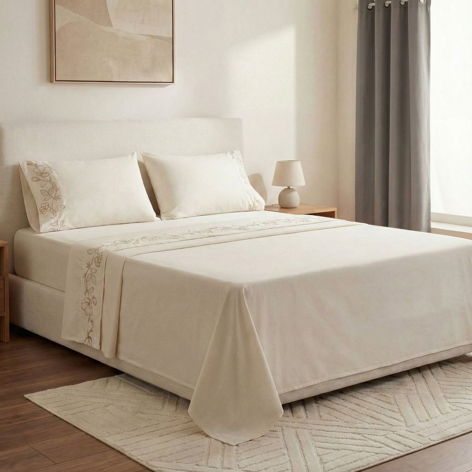 Jogo Cama Queen 4P Floral Bege - Oliveira Lopes