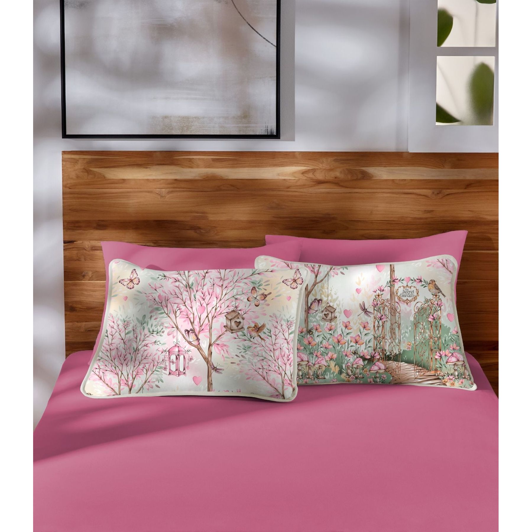 Jogo de Cama Casal 4 Peças Algodão 120 Fios Flore Rosa - PNB