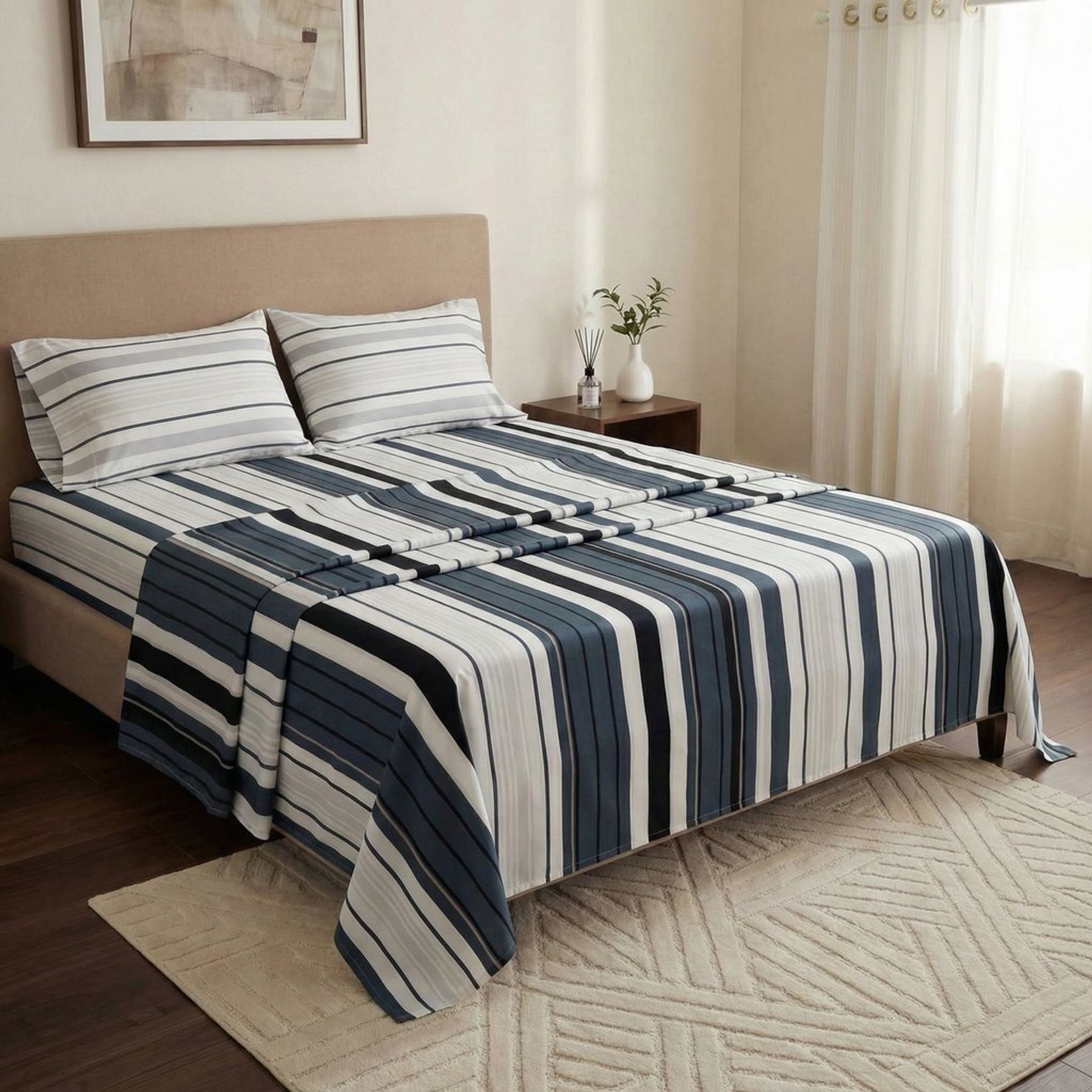 Jogo De Cama Queen 4 Peças Listrado Algodão - Oliveira Lopes