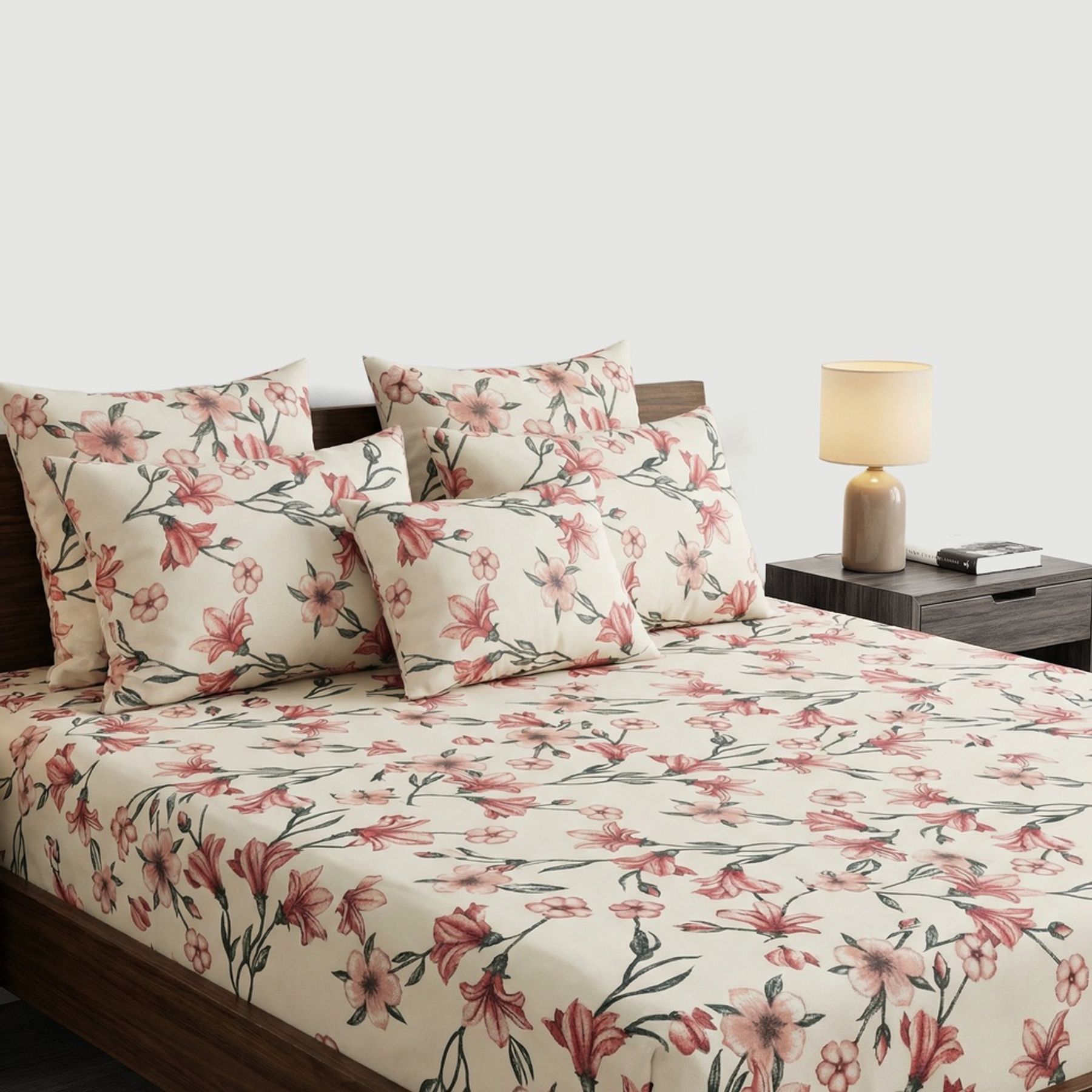 Jogo Cama Queen 4P Floral Bege - Oliveira Lopes