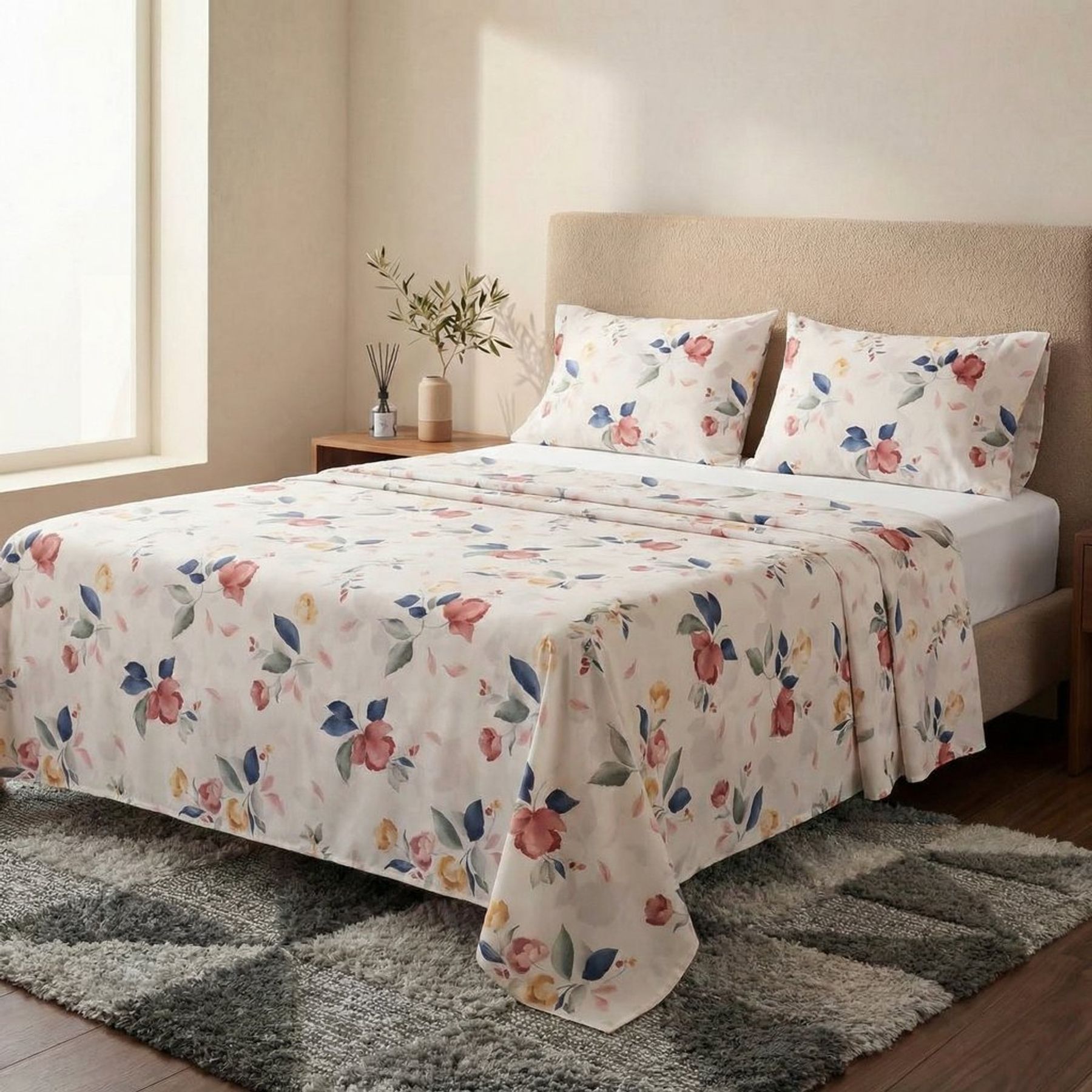 Jogo Cama Casal 4P Floral Bege