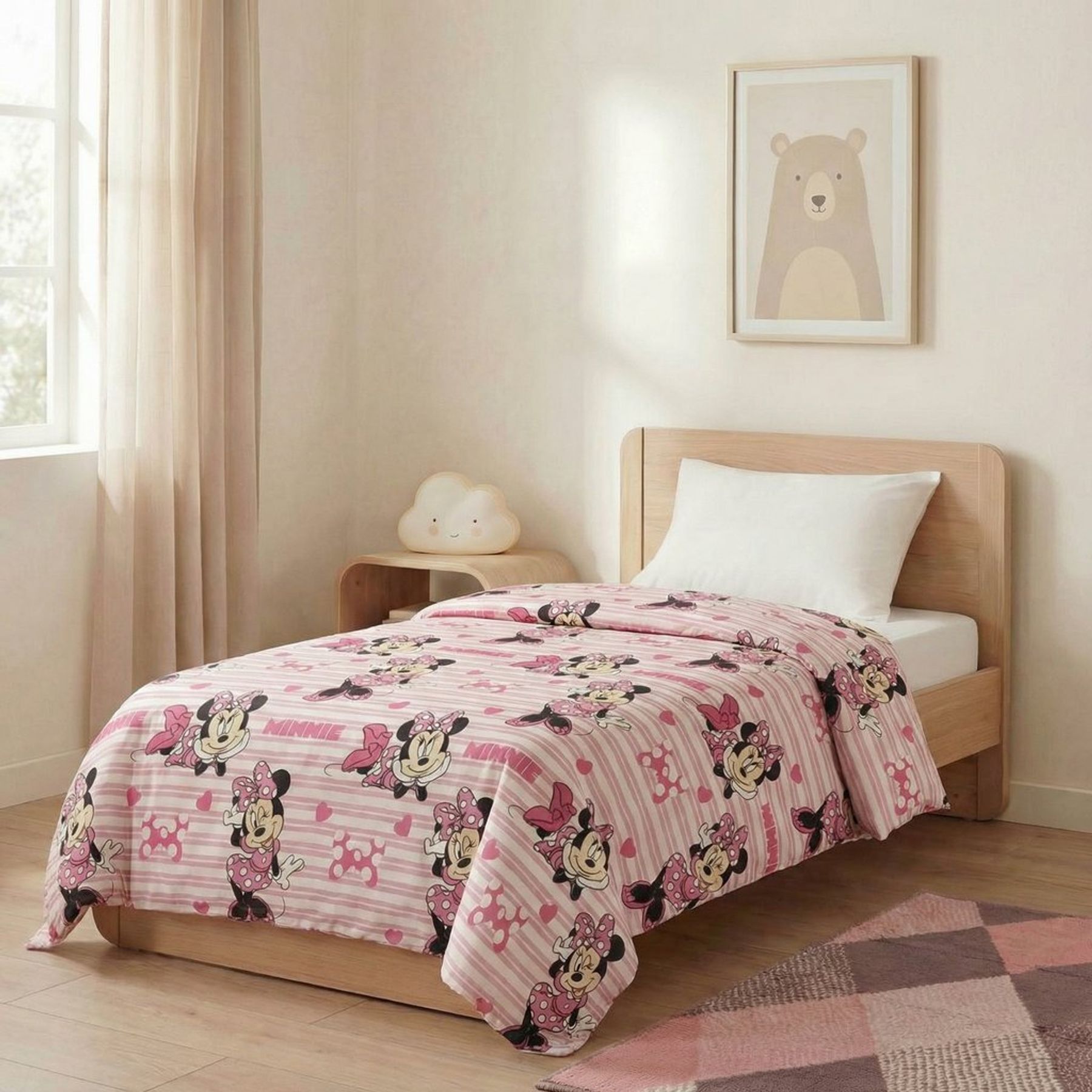 Economia de R$ 10,00O edredom dupla face Minnie Mouse é ideal para deixar o quarto infantil mais acolhedor e com um toque delicado. A estampa licenciada traz a Minnie em repetição, com laços, corações e listras em tons de rosa.
