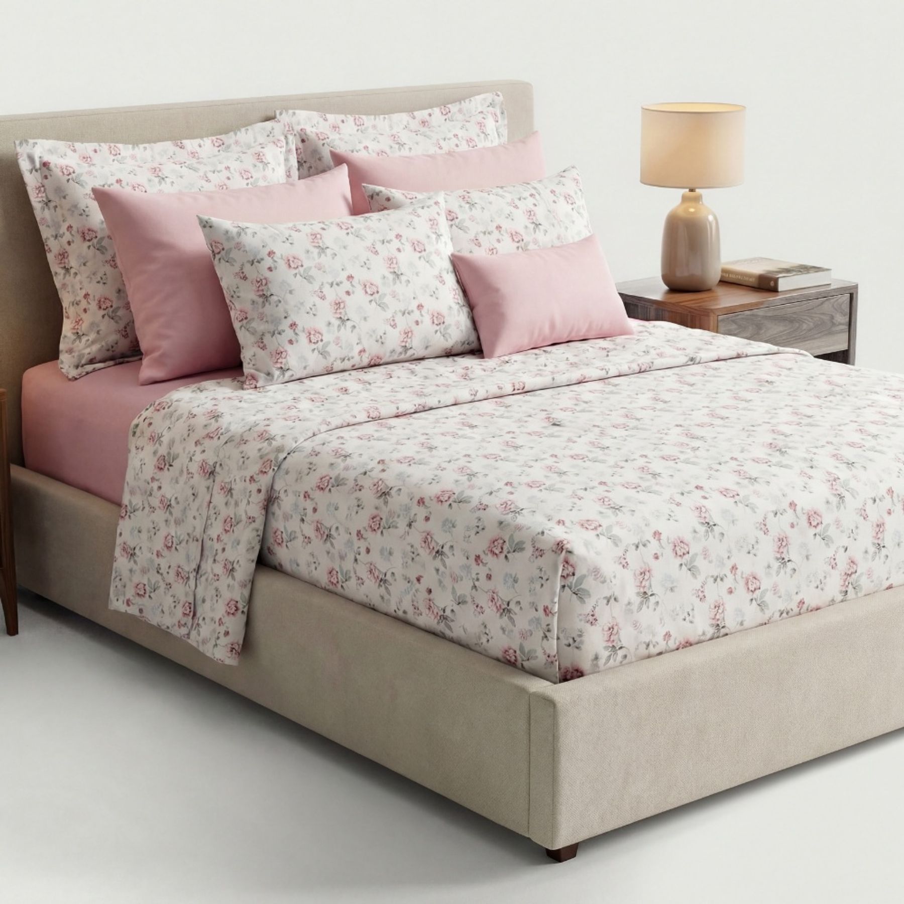 Jogo de Cama Casal 4 Peças Algodão 120 Fios Flore Rosa - PNB