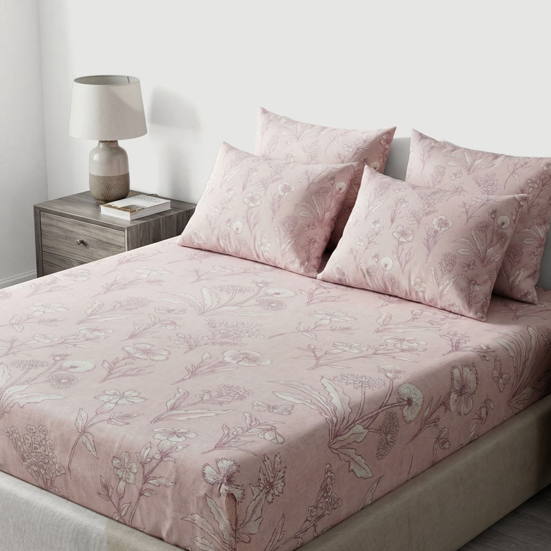 Jogo de cama casal 4 peças algodão estampa floral bege - Pernambucanas Casa