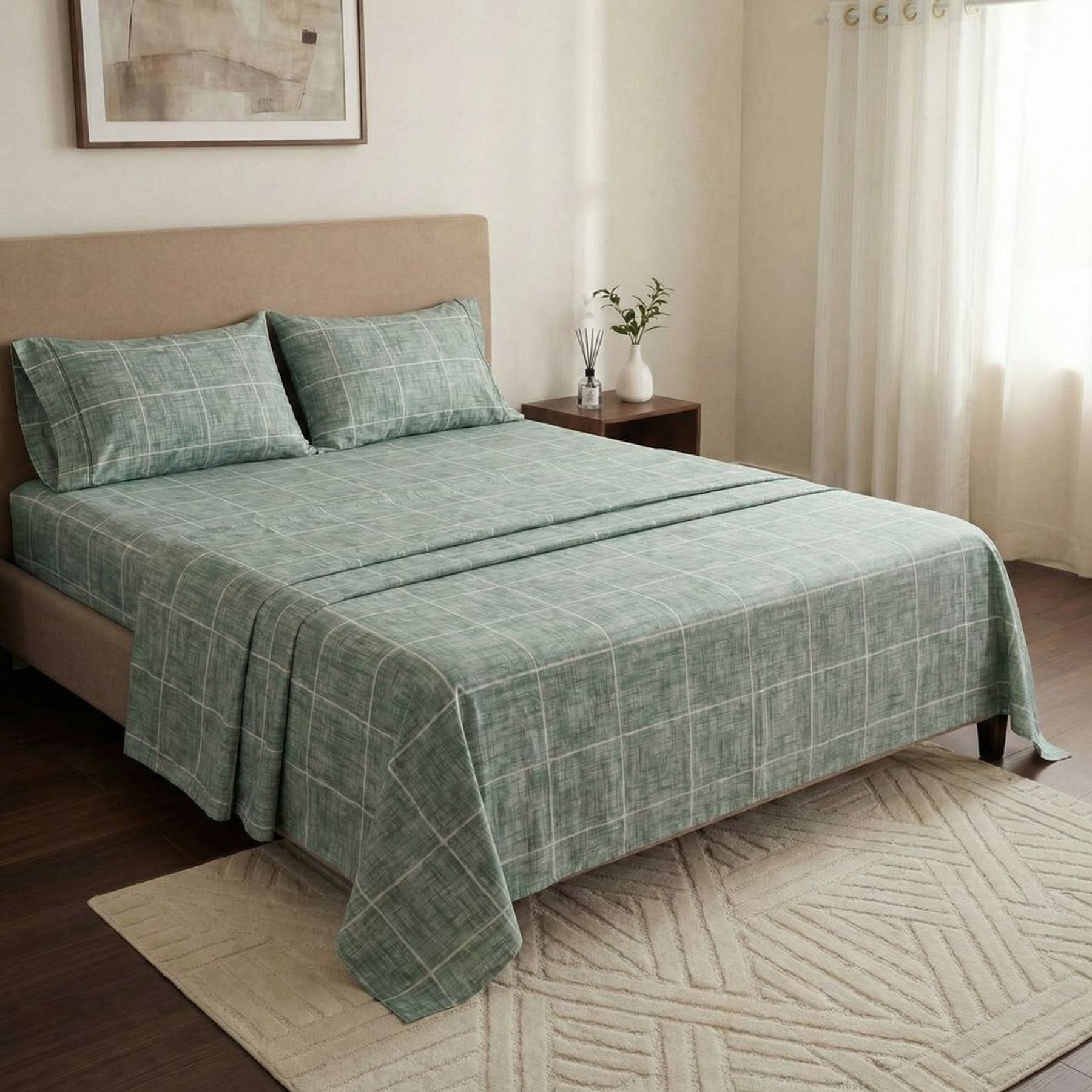 Economia de R$ 7,00O jogo de cama queen 4 peças Oliveira Lopes é ideal para deixar o quarto mais aconchegante e com visual moderno. Produzido em 100% poliéster, oferece toque macio e praticidade na rotina. A estampa em grade com linhas brancas sobre fundo verde acinzentado mesclado cria um efeito neutro e elegante, fácil de combinar com diferentes estilos de decoração. O conjunto coordenado mescla peças estampadas e uma peça lisa com a mesma textura para uma composição harmoniosa na cama.