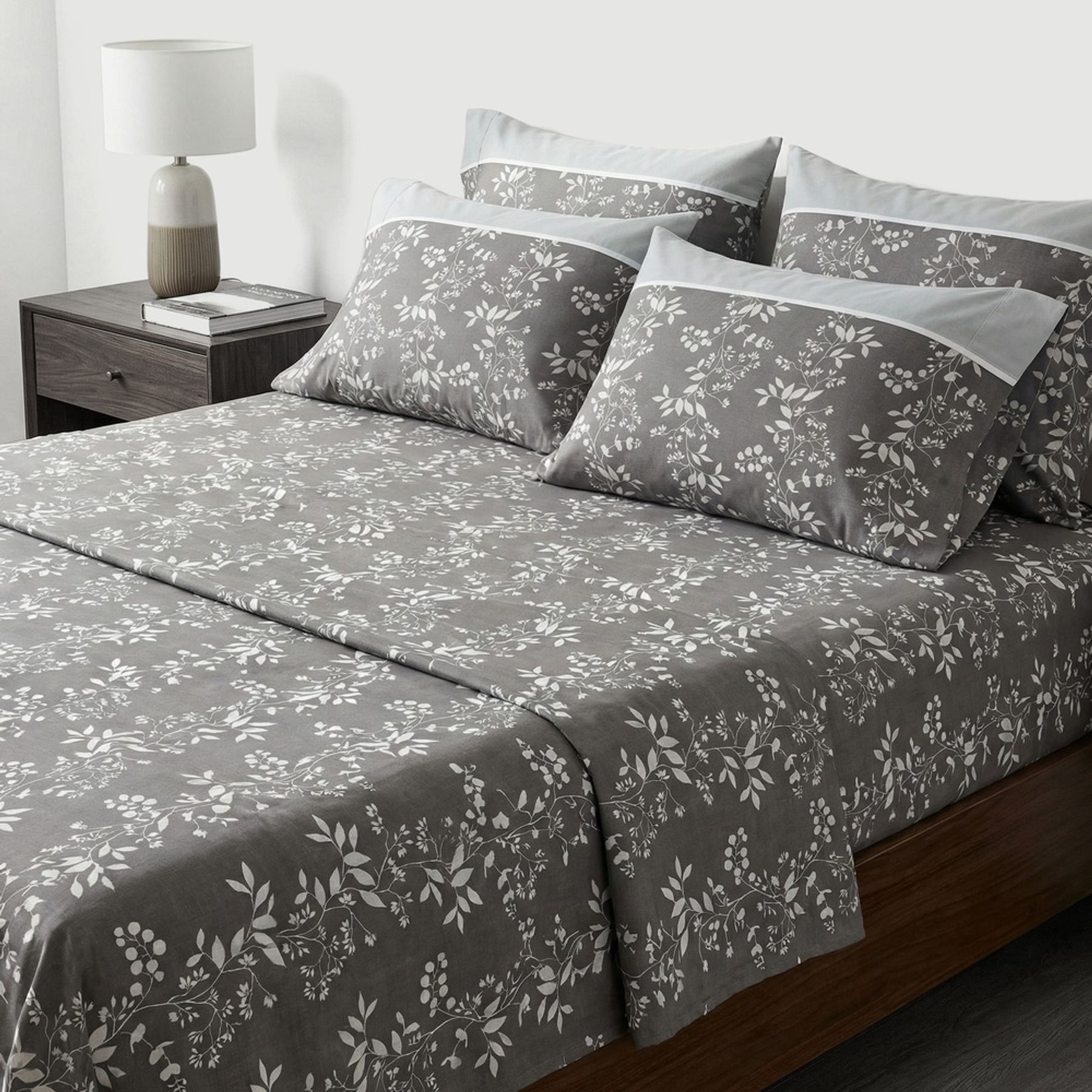 Jogo Cama Solteiro 3Pç Algodão Floral Cinza - Oliveira Lopes