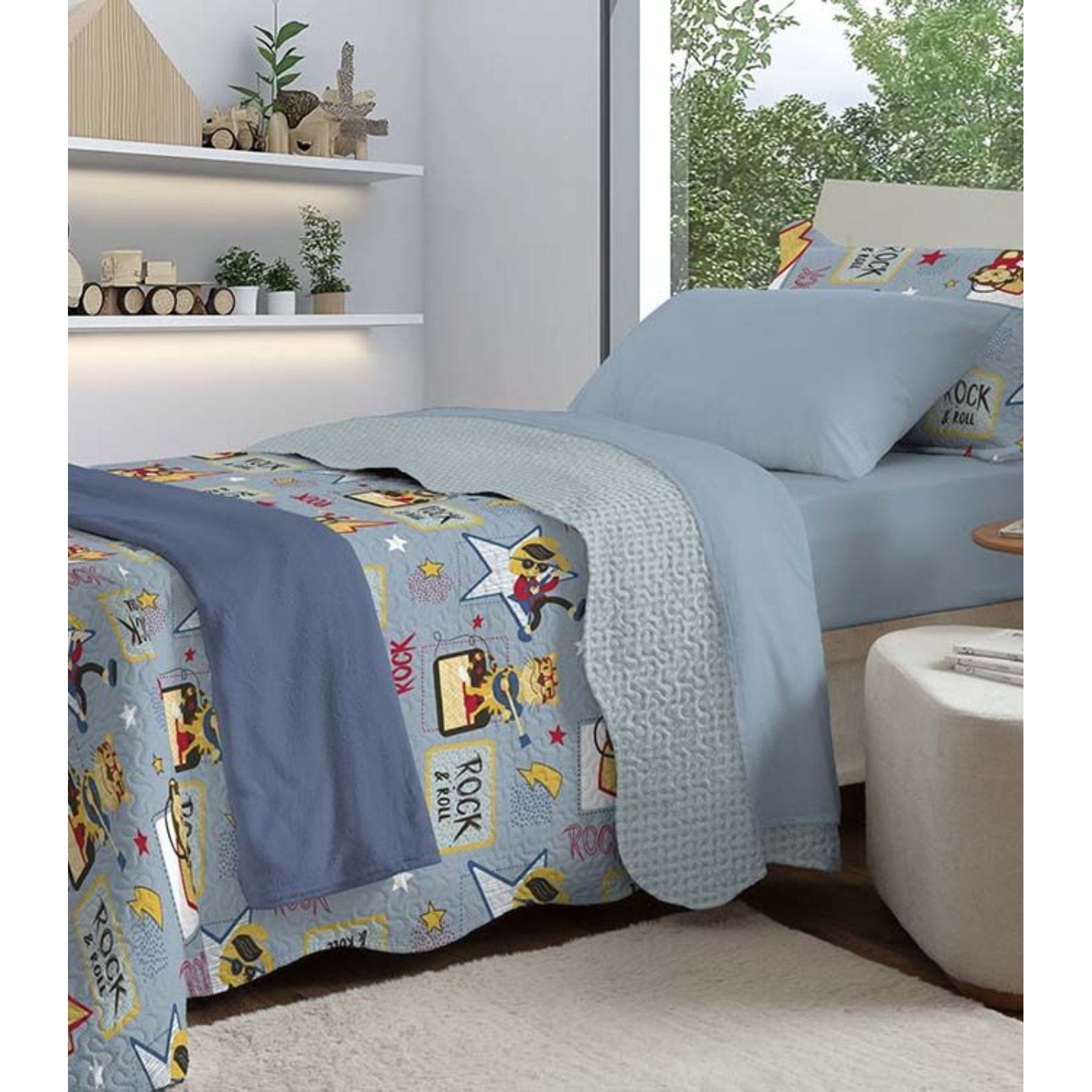 Jogo De Colcha Evolution Infantil Solteiro Camesa Azul