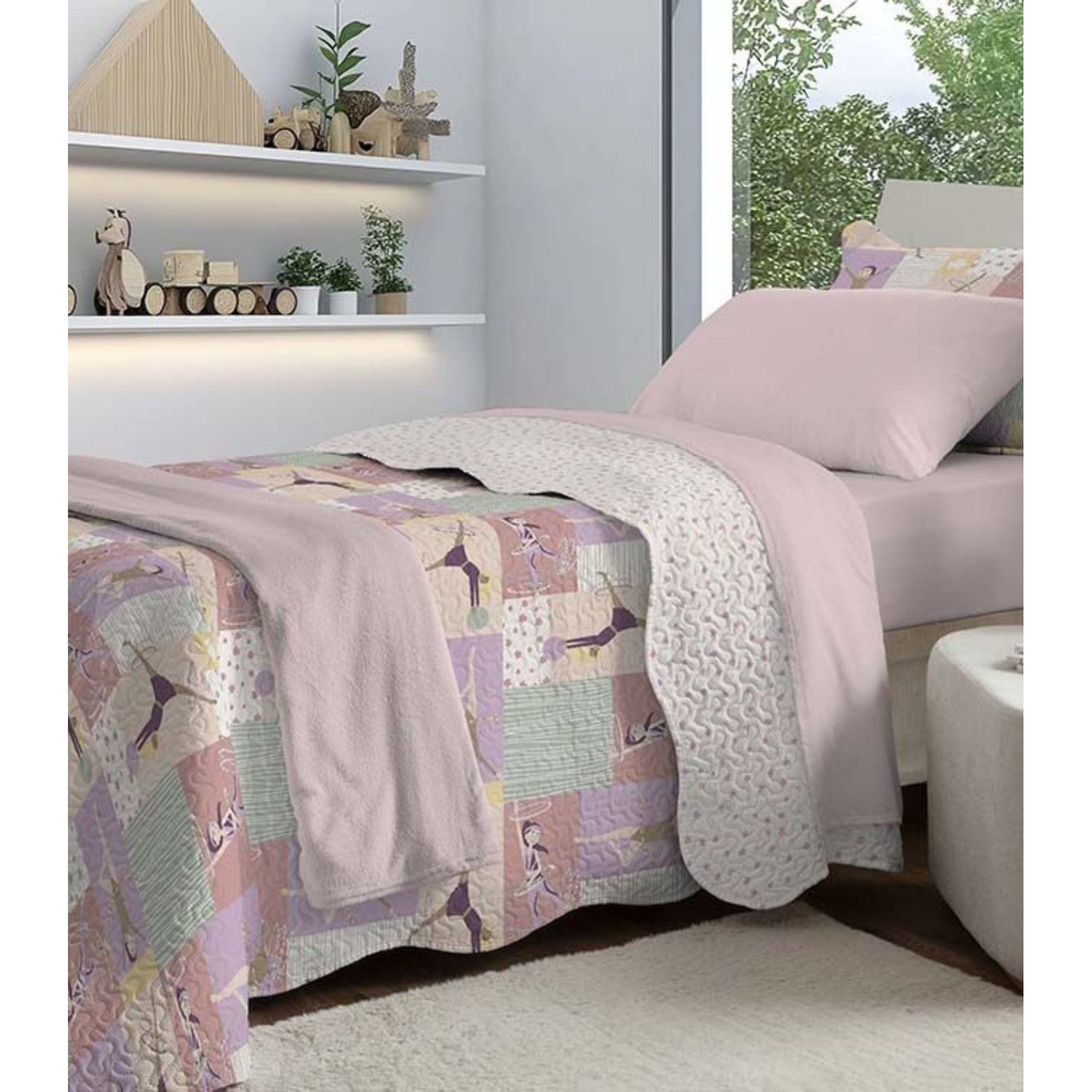 Colcha Solteiro Bouti Infantil Microfibra Rozac Rosa