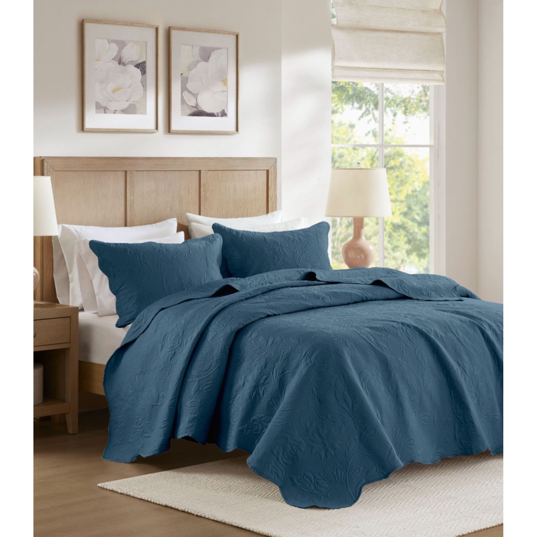 Colcha L/Queen Algodão Lirada Marinho Artesanal
