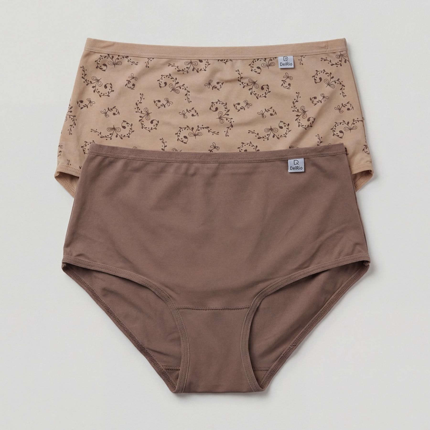 Economia de R$ 4,00Kit com 2 calcinhas bege e chocolate, modelagem confortável.