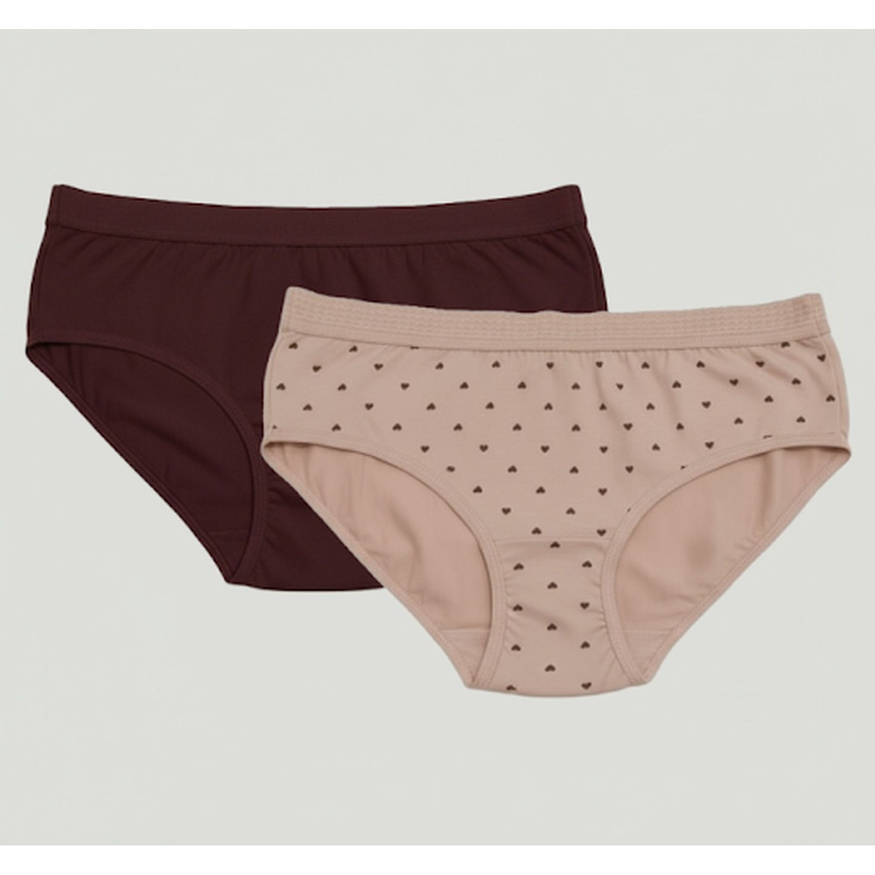 Economia de R$ 2,60Kit com 2 calcinhas de cintura alta, uma lisa e outra com estampa de coração. Ideal para quem busca conforto e variedade no dia a dia.