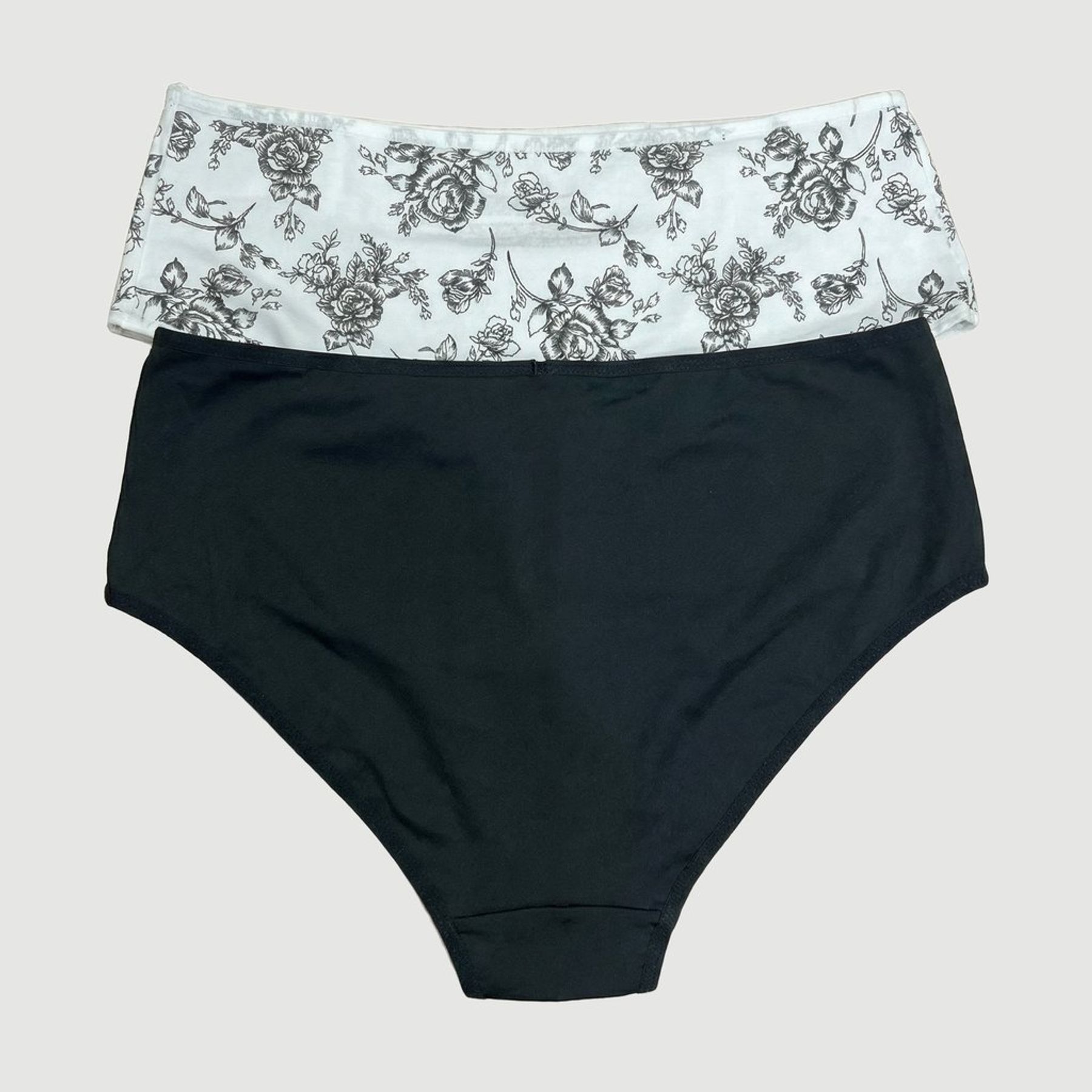 Kit 2 Calcinhas Boxer Cintura Alta Floral P/B - Del Rio