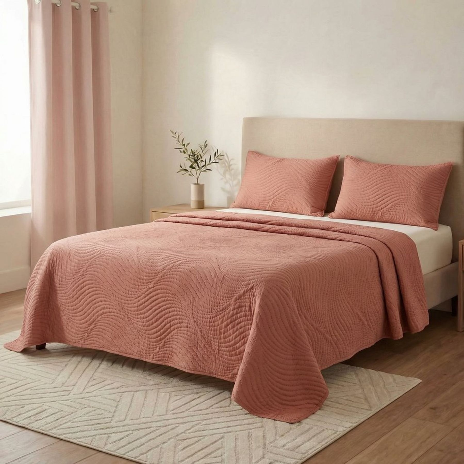 Economia de R$ 43,00O conjunto de colcha casal em microfibra na cor rose traz um visual minimalista para o quarto, com textura matelassada em ondas que adiciona relevo e elegância. Produzido em 100% poliéster, oferece toque macio e praticidade na rotina. Conjunto com 2 peças: colcha e 1 porta-travesseiro.