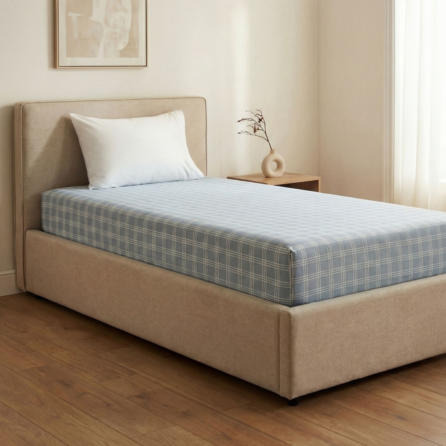 A estampa xadrez azul com linhas finas brancas entrega um visual clássico e versátil, combinando com diferentes estilos de enxoval. Item incluso: 1 lençol.