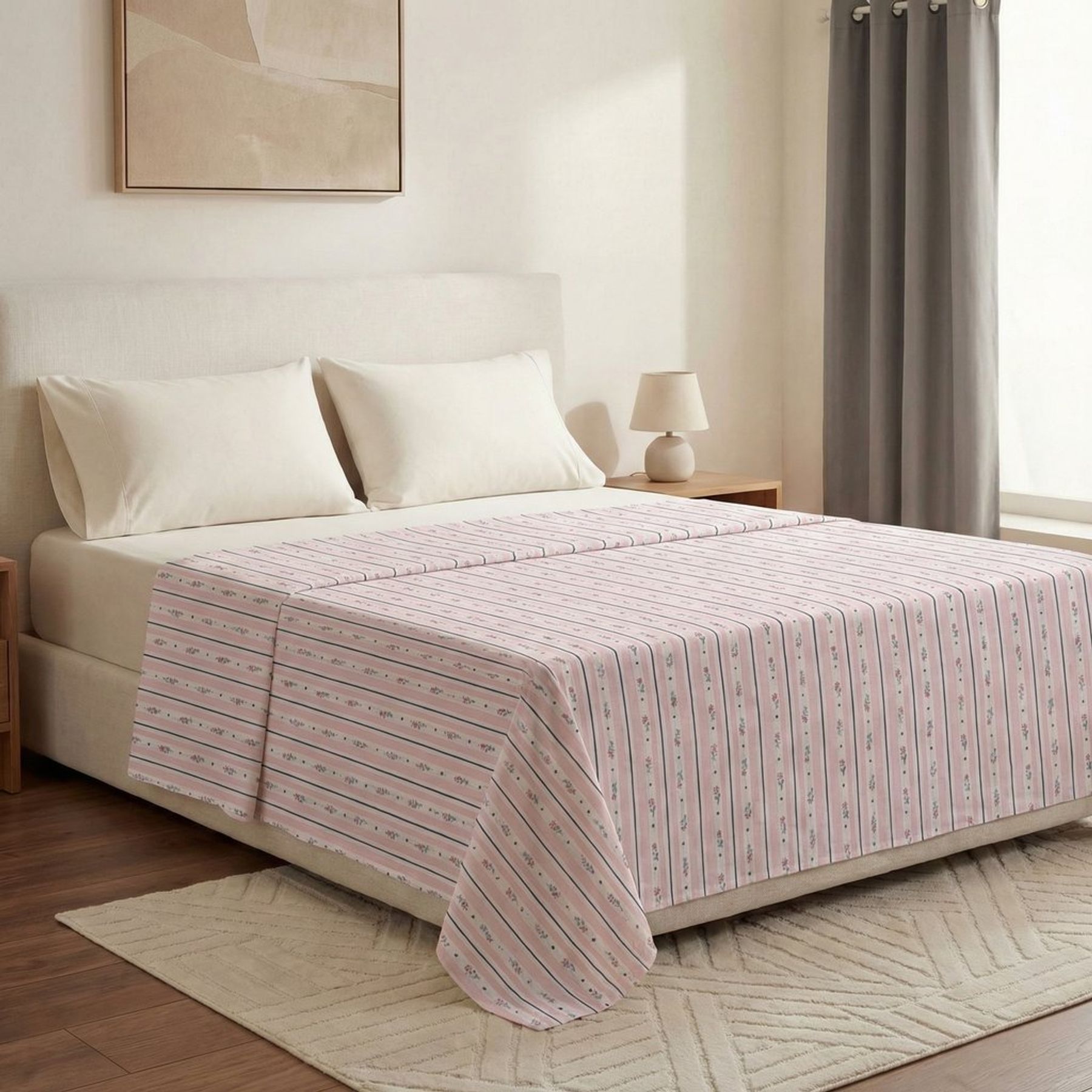 Lençol Avulso Floral Listrado Rosa - Oliveira Lopes