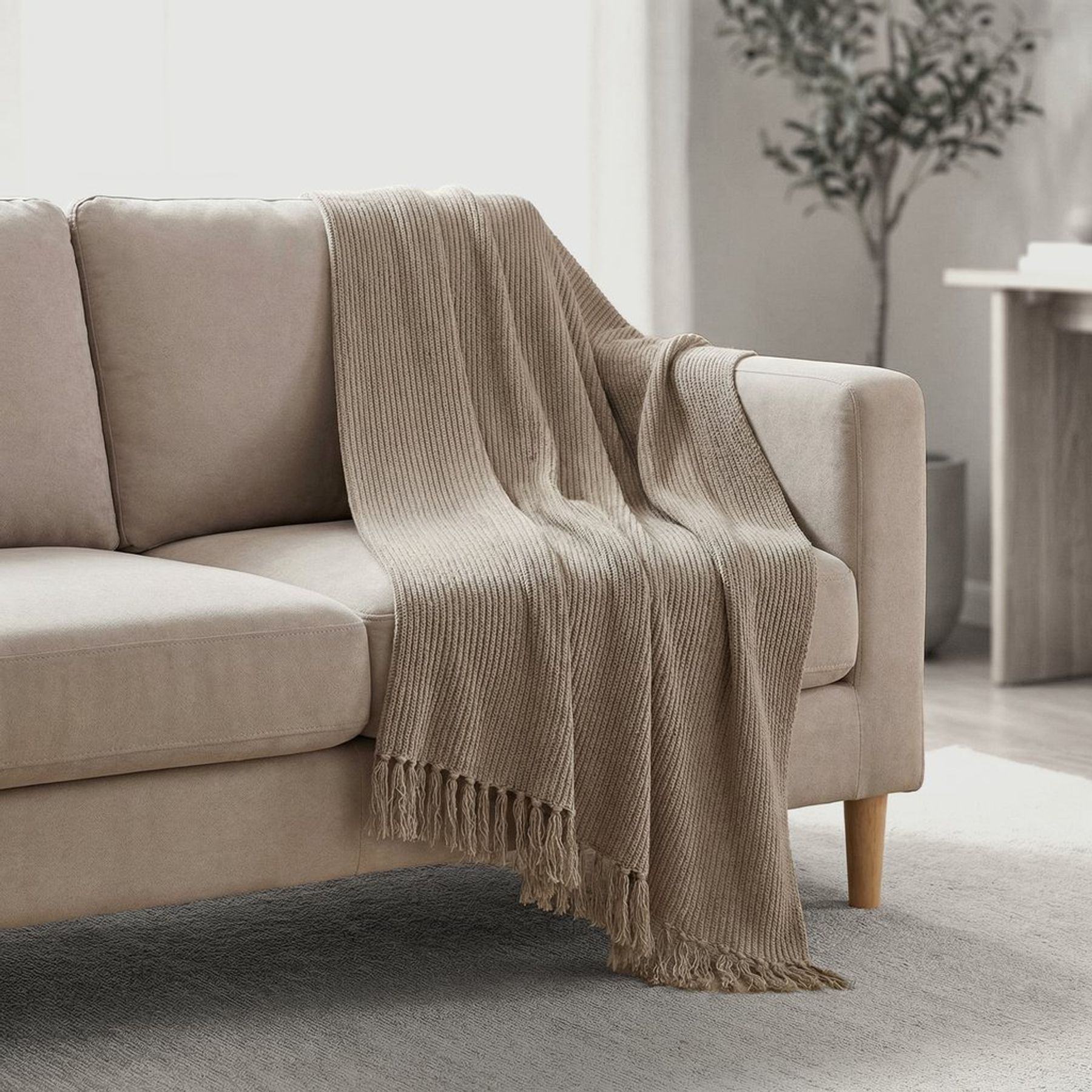 Manta para Sofá Texturizada 140x140 cm Areia em Algodão - Casa Decora