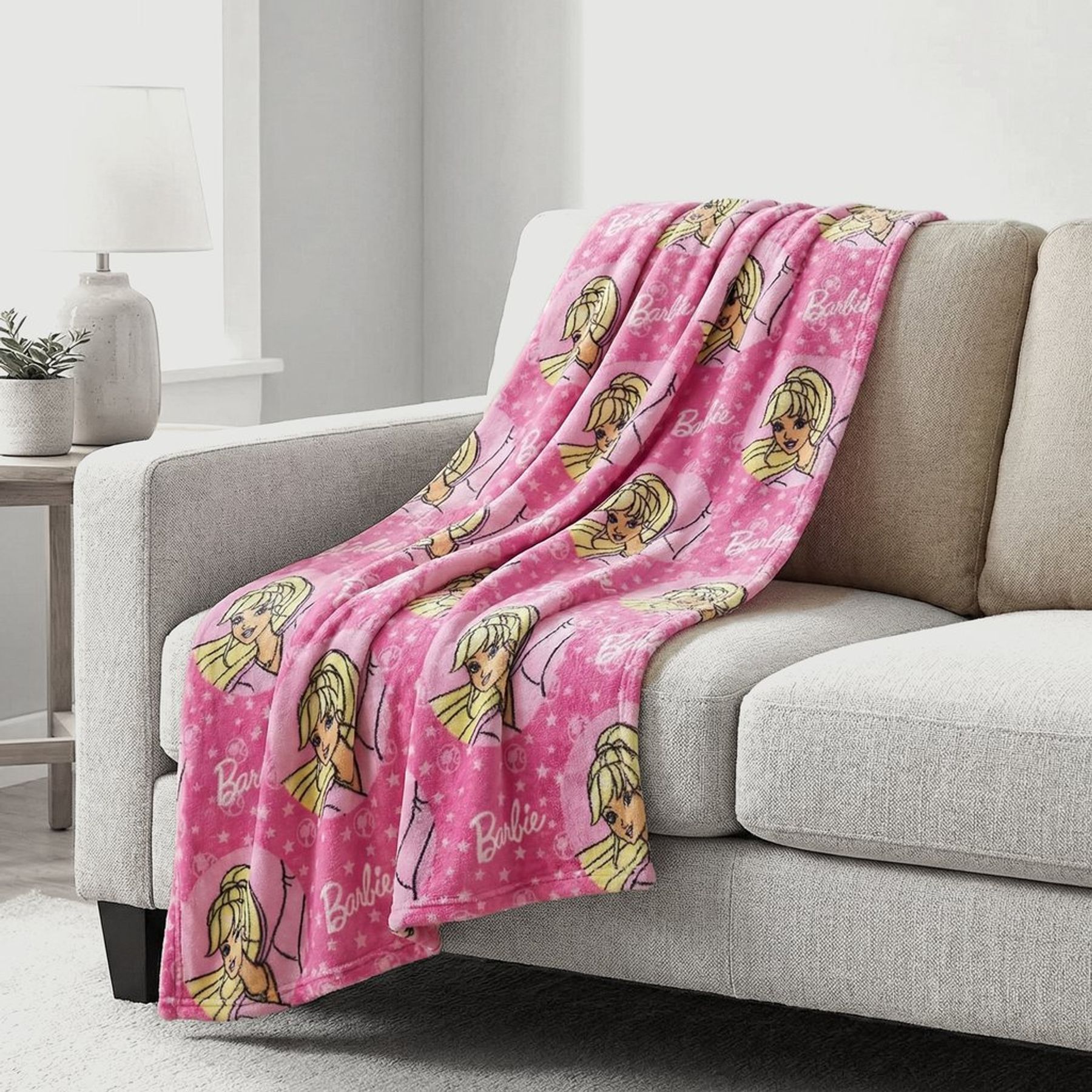 Com estampa total da Barbie em fundo rosa, traz um visual lúdico com estrelas e o logo “Barbie”. Produto licenciado Barbie da Mattel. Conteúdo da embalagem: 1 mantinha.