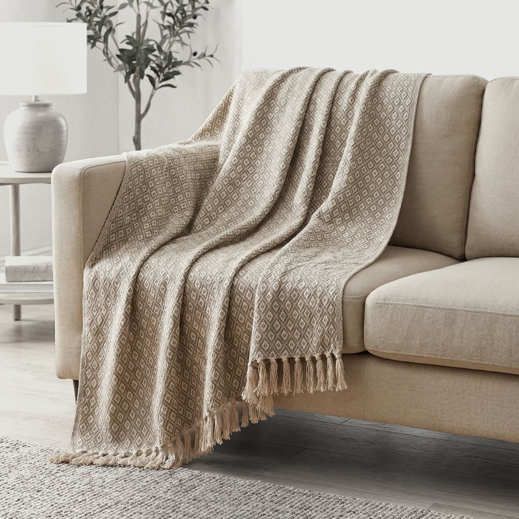 Manta para Sofá Texturizada 140x140 cm Areia em Algodão - Casa Decora