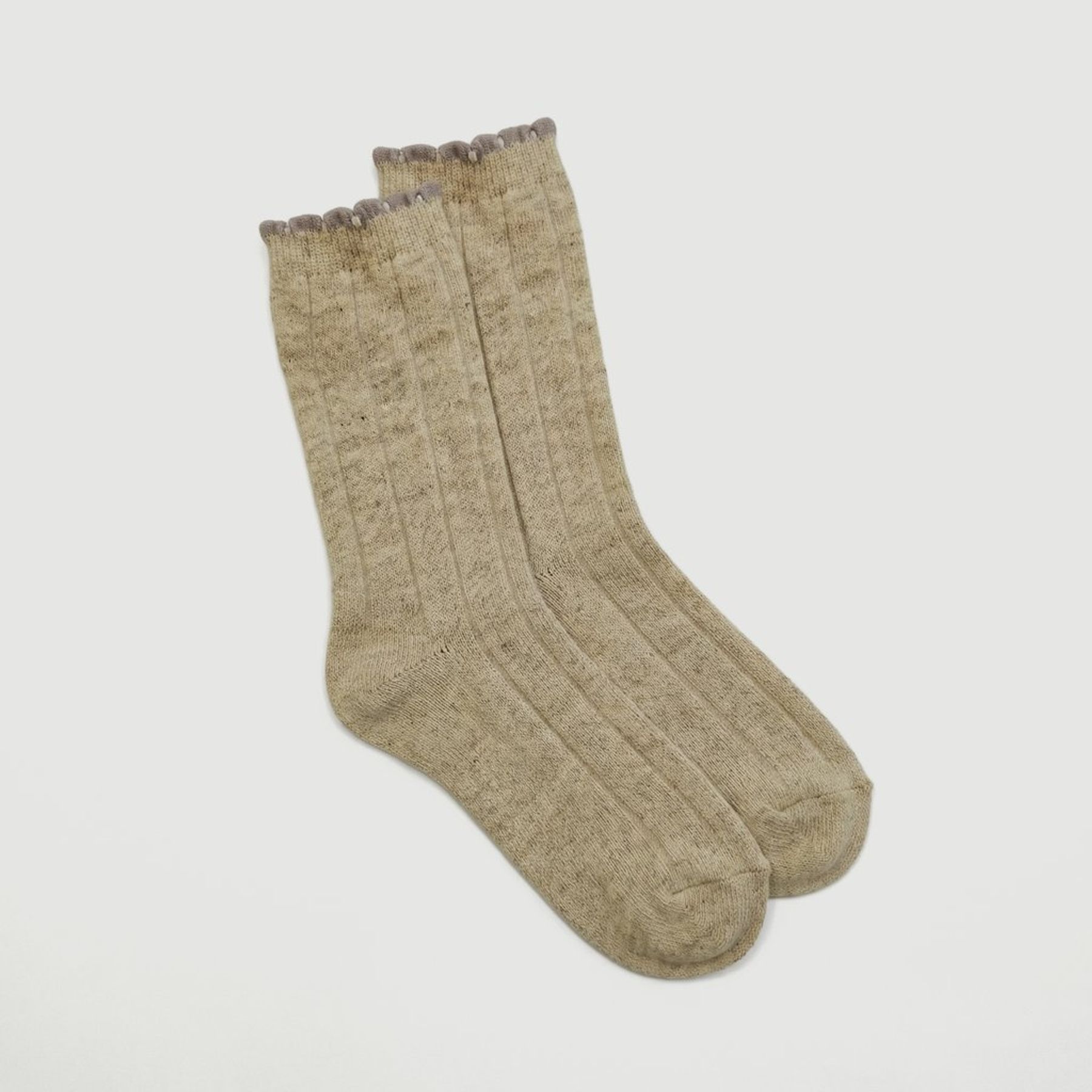 Meia feminina cano curto guarda-chuva bege - Uniq