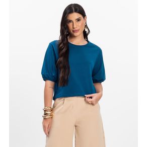 Blusa Manga Camponesa Feminina Rovitex Azul