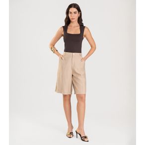 Shorts Feminino Cós Largo Em Alfaiataria Dianna Marrom