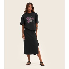Saia Midi Feminina em Malhão Rovitex Preto
