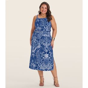 Saia Midi Feminina Plus Size Secret Glam Azul