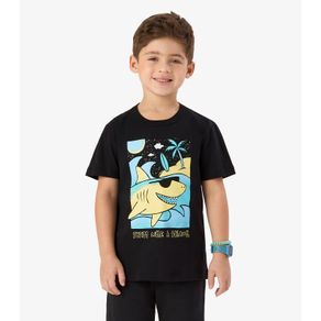 Camiseta Meia Malha Infantil Masculina Rovi Kids Preto