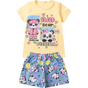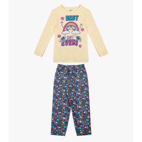Pijama Menina Manga Longa Brilha No Escuro Kappes Amarelo