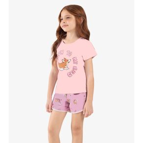 Pijama Infantil Menina Meia Malha Rovi Kids Rosa