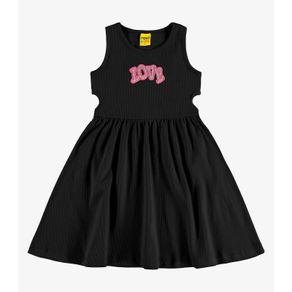 Vestido Infantil Manga Longa Canelado Rovi Kids Preto