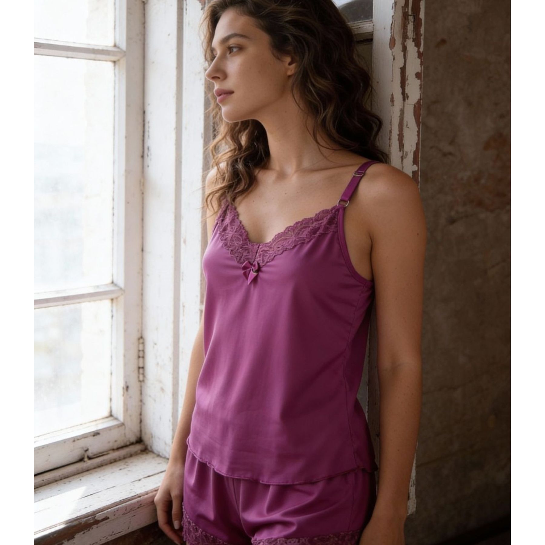 Pijama Curto Baby Doll Feminino Poliamida Damana Roxo