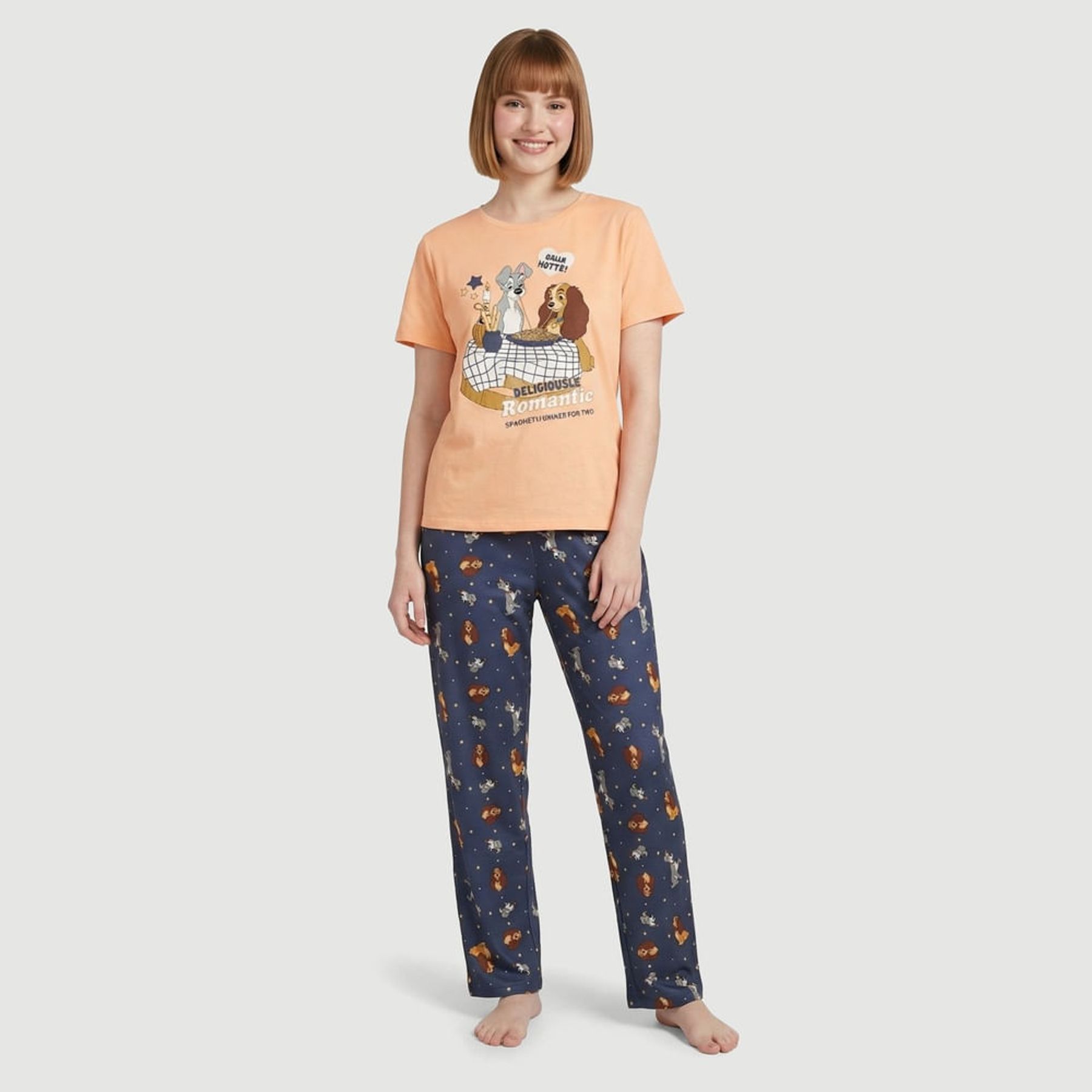 Pijama Feminino Mc Calça A Dama Vagabundo Laranja - Disney
