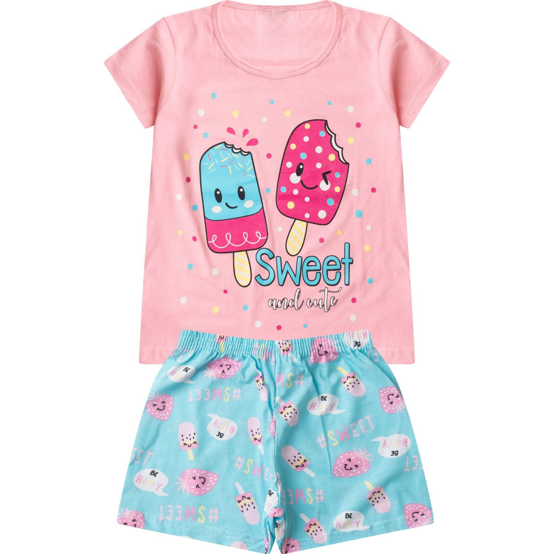 Pijama Infantil Menina Curto Algodão Select Rosa