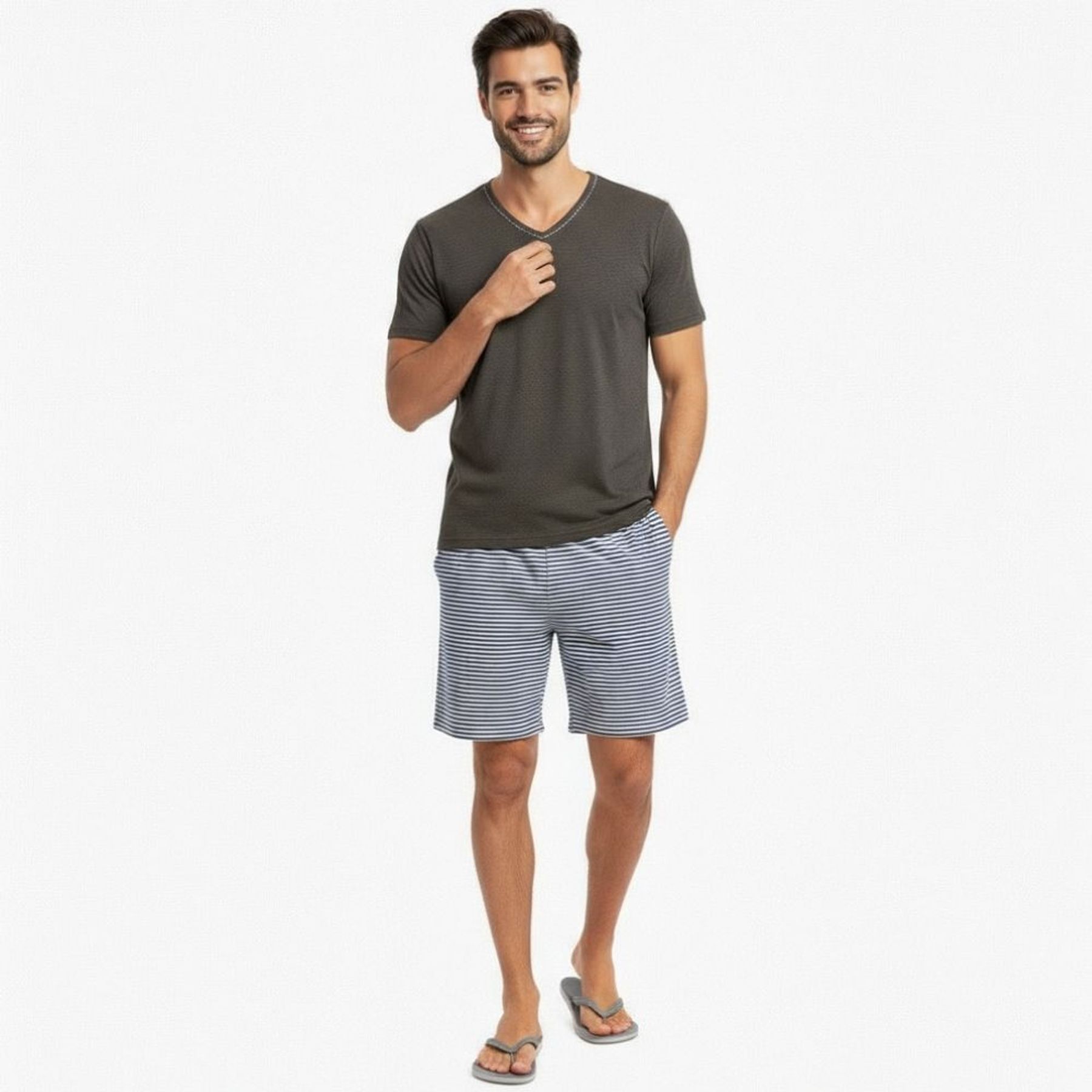Pijama masc manga curta bermuda cinza mescla - Id Underwear