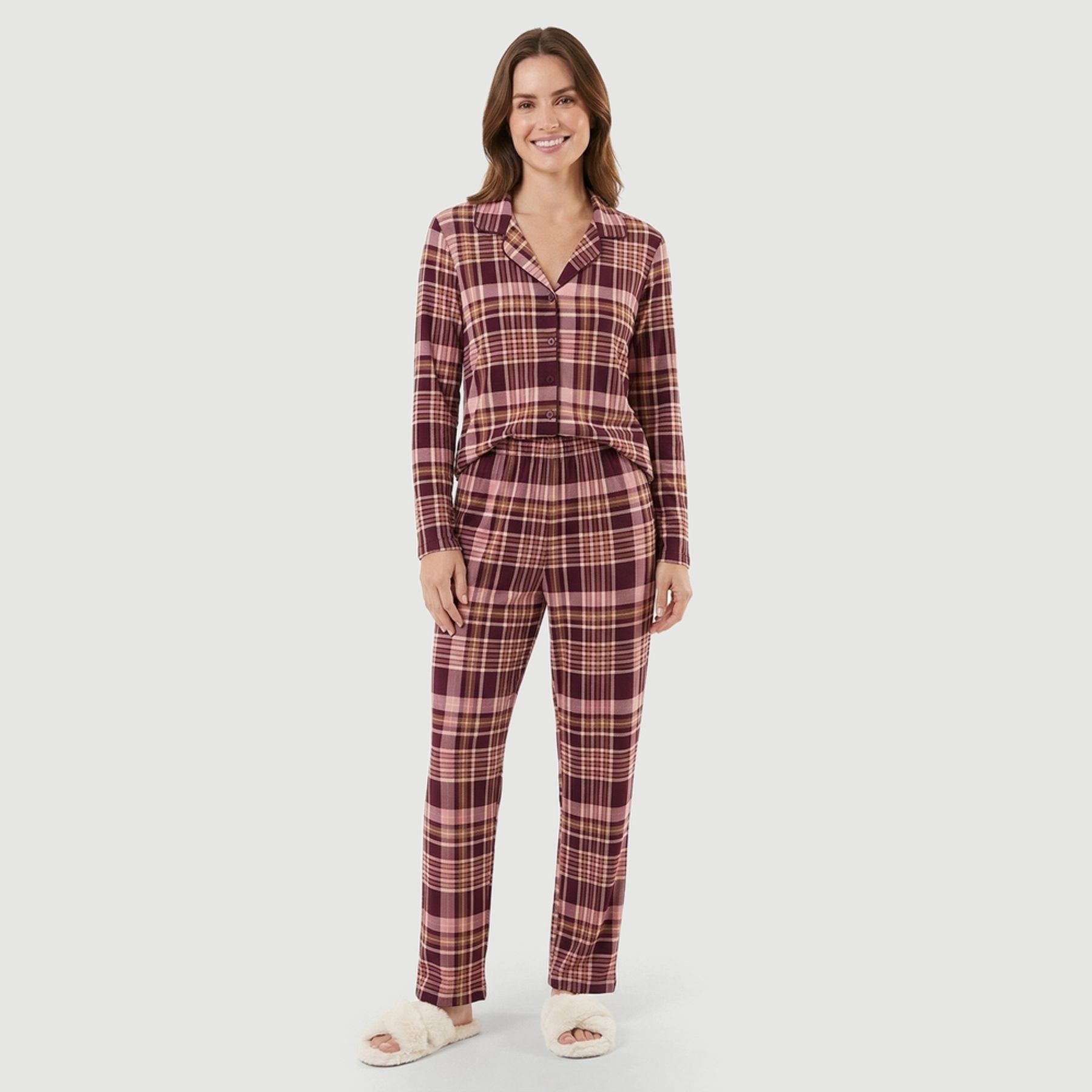 Pijama Manga Longa Marrom Feminino