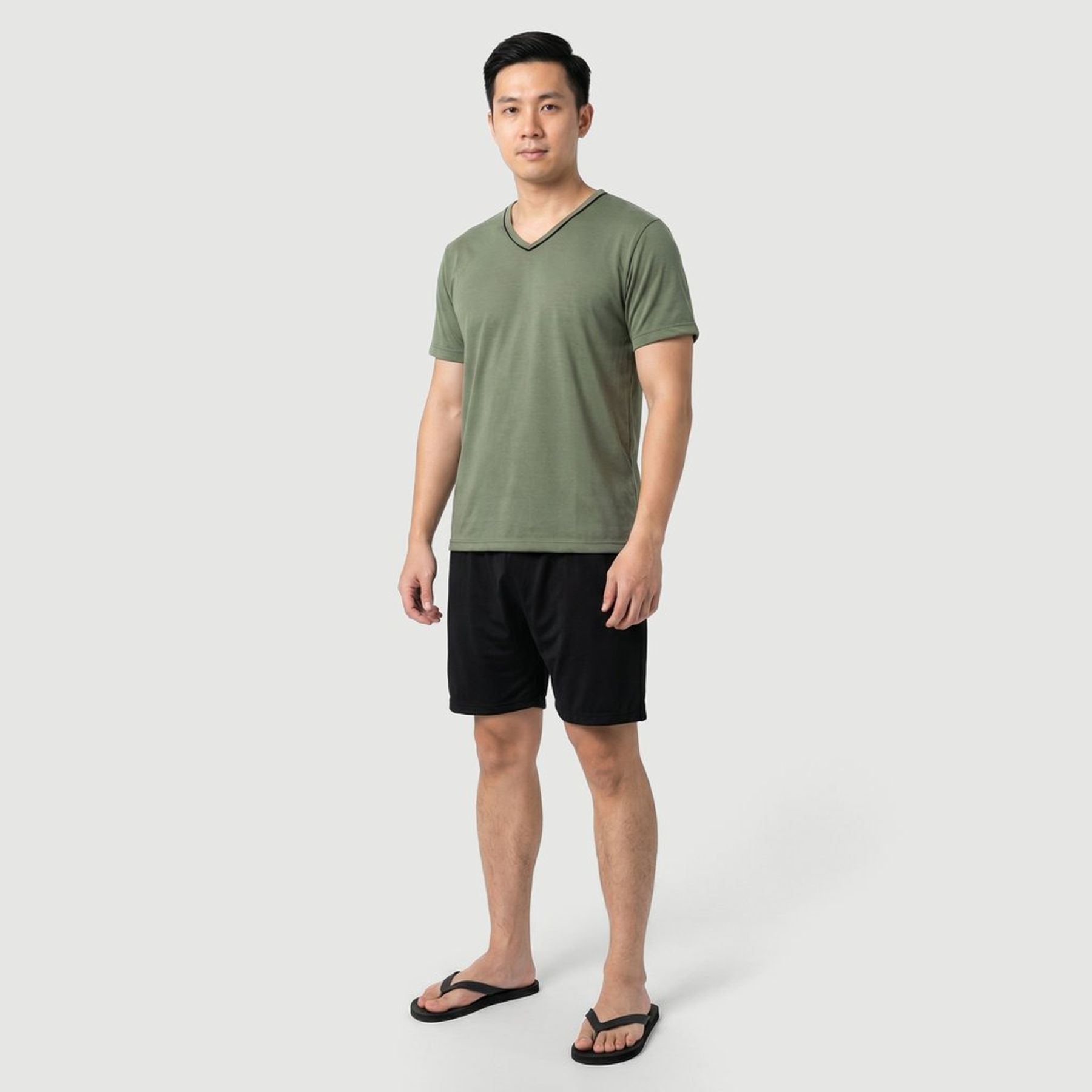 Economia de R$ 7,00O pijama masculino Id Underwear é ideal para dormir e relaxar. O conjunto traz camiseta de manga curta com decote V na cor verde e short preto com cós elástico, oferecendo praticidade e toque macio. Confeccionado em tecido misto com predominância de viscose e acabamento liso, garante caimento agradável.