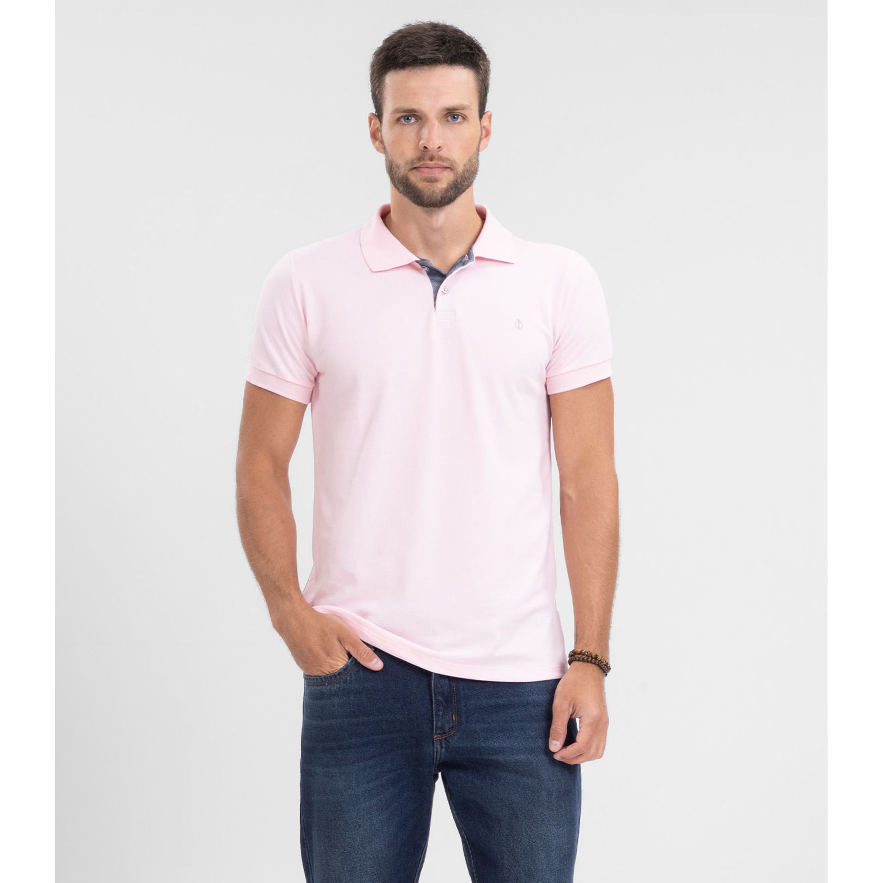 Polo Masculina Regular Piquet Lisa Rosa - Id Casual