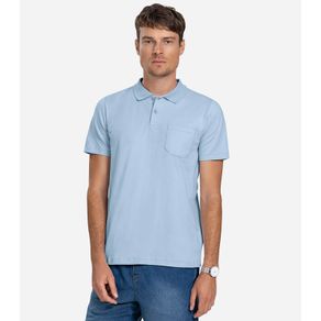 Polo Masculina Com Bolso Cotton Leve Diametro Azul