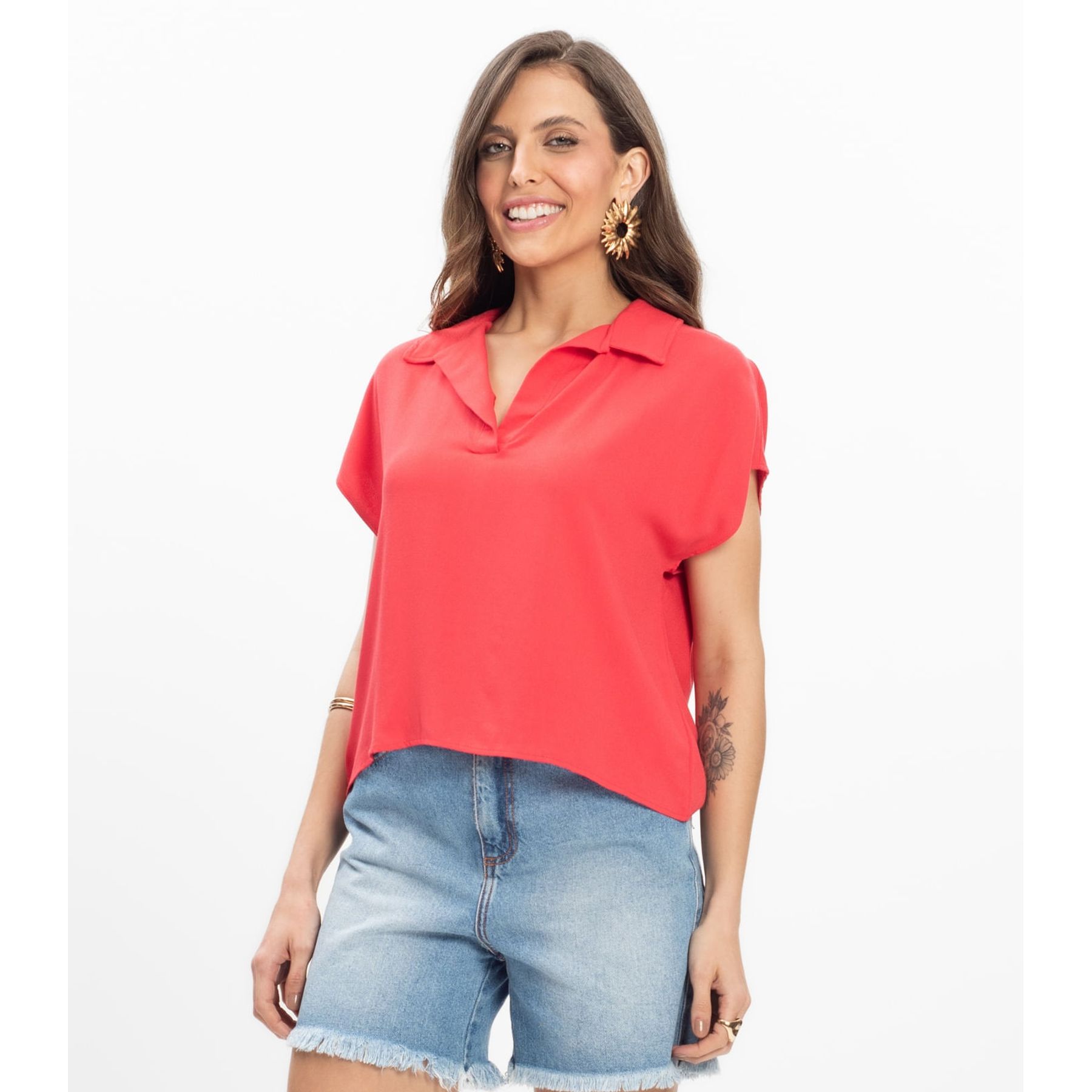 Camisa Feminina Manga Curta Com Gola Endless Preto