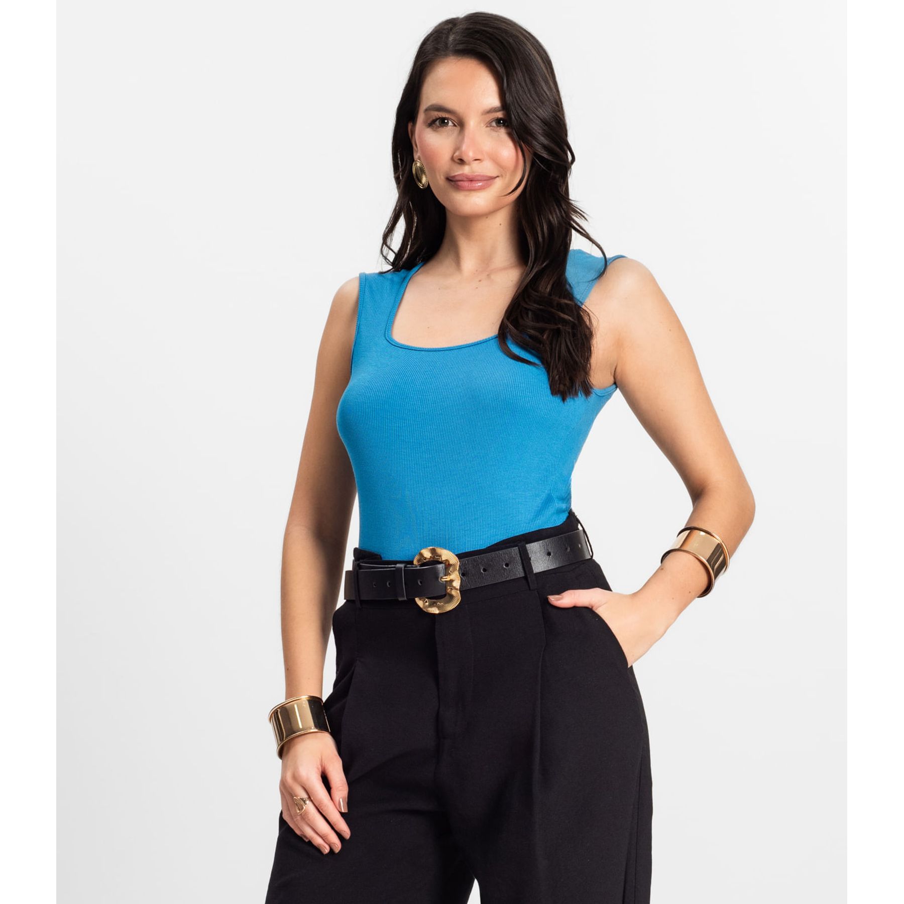 Regata Feminina em Ribana de Viscose Rovitex Azul