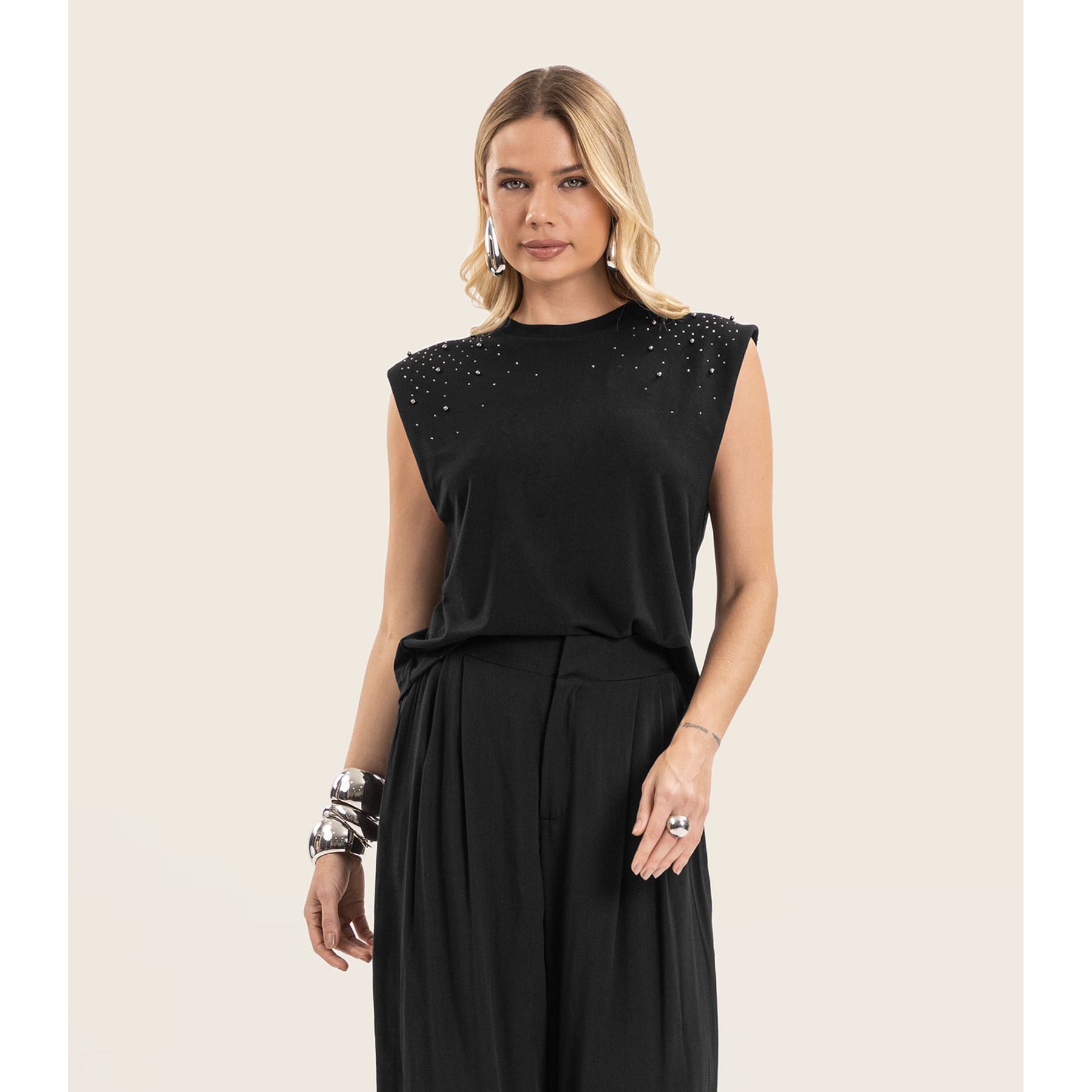 Blusa de Alça Plus Size Feminina Secret Glam Preto