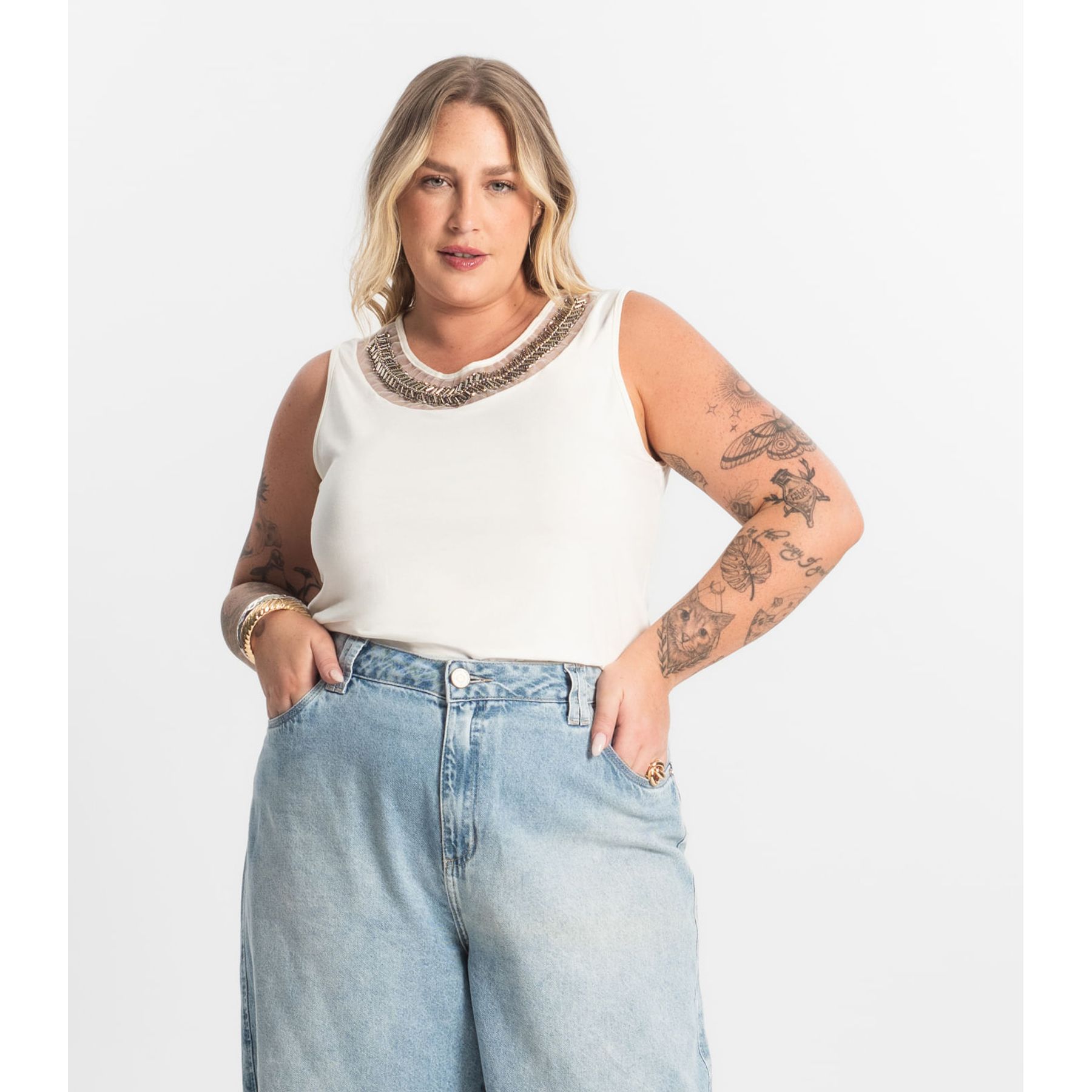 Regata Feminina Plus Size Secret Glam Bege